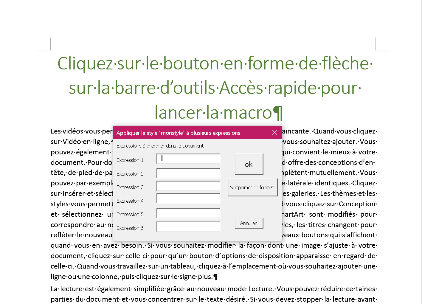Cet exemple permet de faire une recherche multiple afin d'appliquer un style de caractères à diverses expressions.