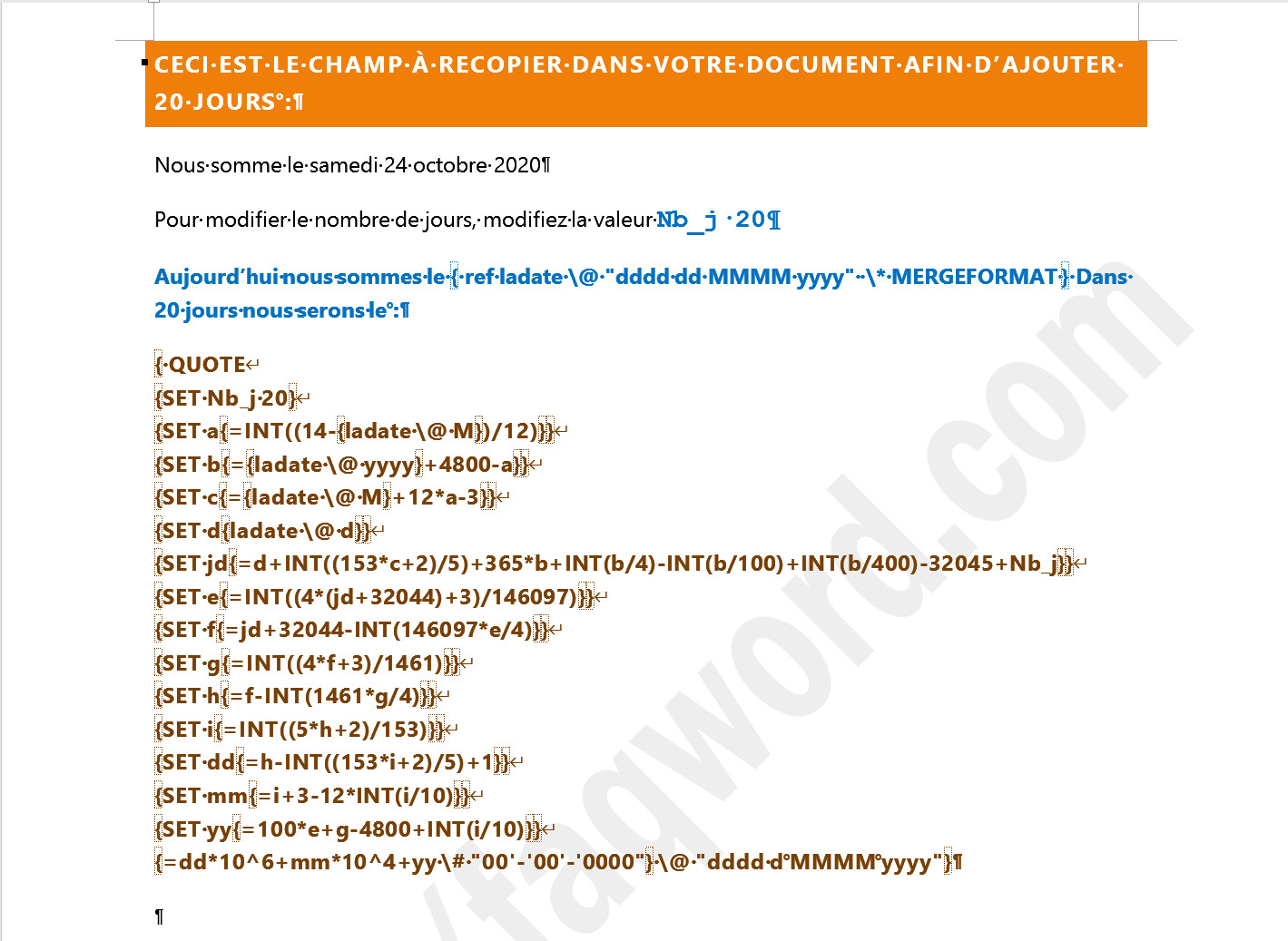 Document complet qui va, peut-être, vous donner l'envie de faire des calculs sur des dates, avec Word !!